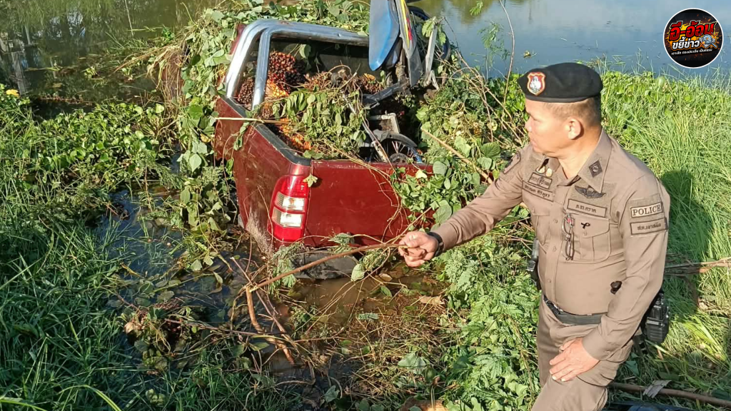 กระบะขนปาล์มวูบตกคลอง คนขับรีบชิ่งหนีพร้อมบอกพลเมืองดีไม่ต้องแจ้งตำรวจ สุดท้ายเจ้าหน้าที่กู้ภัยพบยาบ้า 9 เม็ด ถูกทิ้งใกล้รถยนต์ ตร.เตรียมสืบหาคนขับ