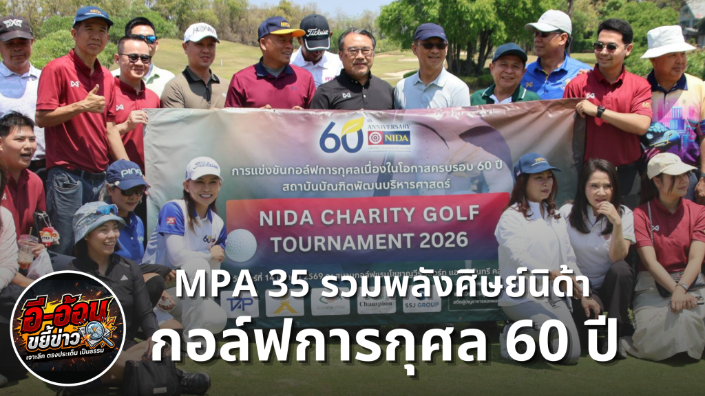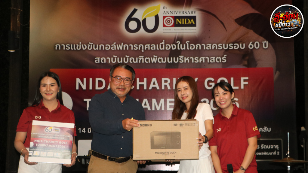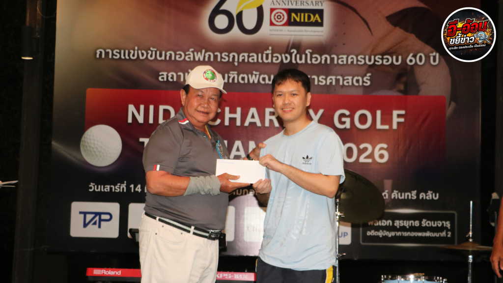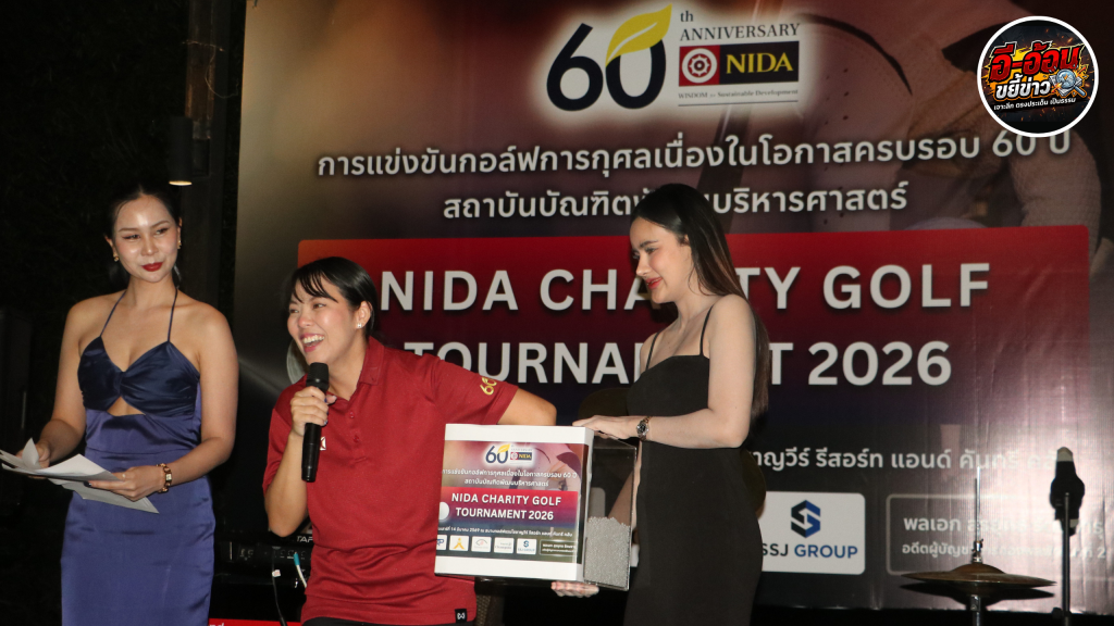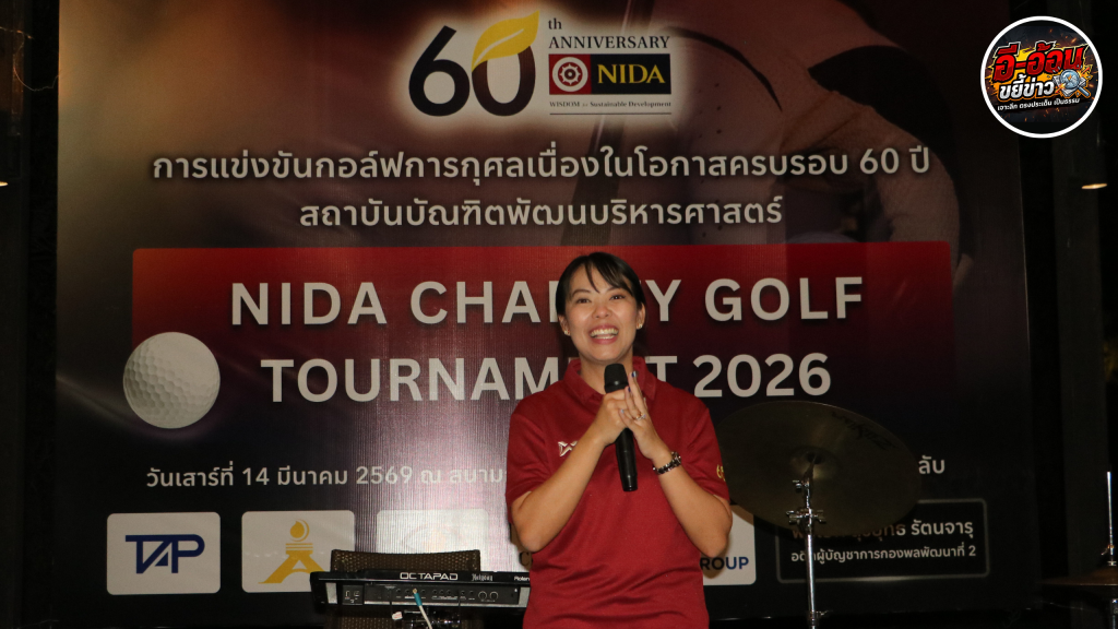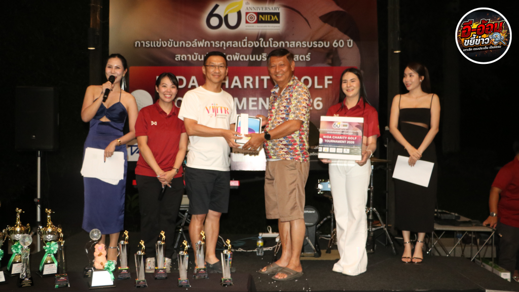 การแข่งขันกอล์ฟการกุศลฉลองครบรอบ 60 ปี NIDA NIDA CHARITY GOLF TOURNAMENT 2026 ชิงถ้วยรางวัลเกียรติยศจากท่านอธิการบดีสถาบันบัณฑิตพัฒนบริหารศาสตร์ เมื่อวันเสาร์ที่ 14 มีนาคม 2569 ณ สนาม แรนโช ชาญวีร์ รีสอร์ท แอนด์ คันทรี คลับ (Rancho Charnvee Resort & Country Club) บรรยากาศเต็มไปด้วยความสนุกสนาน อบอวลด้วยมิตรภาพก๊วนเพื่อนพี่น้องกอล์ฟ สถาบัน NIDA และ ทีมกิตติมศักดิ์ VIP ทีมบุคคลทั่วไป ท่ามกลางของรางวัลกอล์ฟแบรนด์มากมาย ตลอดจนงานเลี้ยงดินเนอร์ ขอแสดงความยินดีกับผู้ได้รับรางวัลทุกท่าน