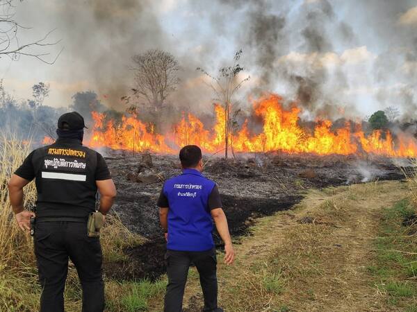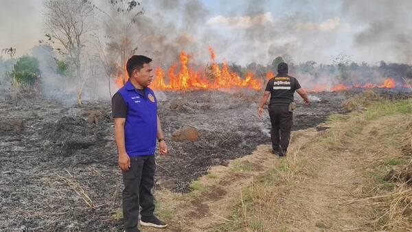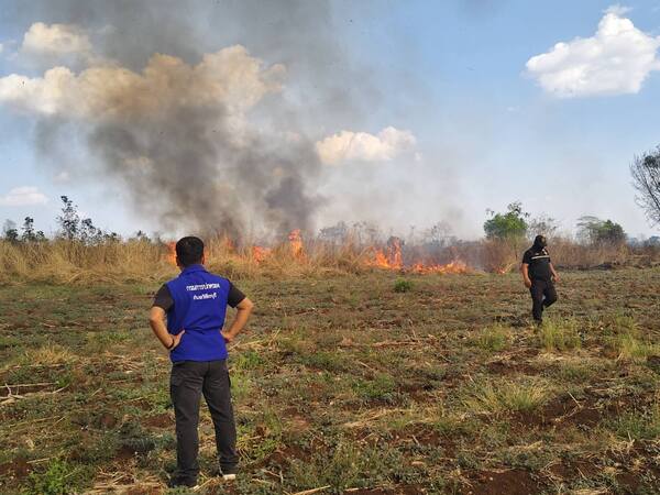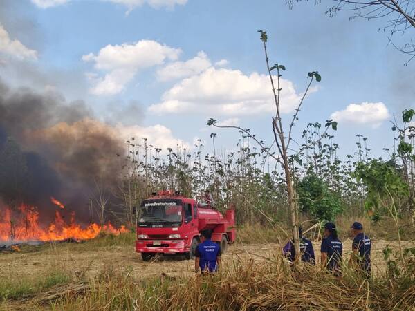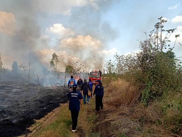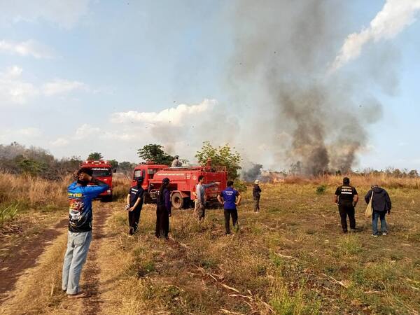 ระทึกกลางบ่าย ไฟไหม้พื้นที่หมู่ 4 ต.น้ำร้อน อ.วิเชียรบุรี จ.เพชรบูรณ์ เจ้าหน้าที่ ปภ. รถน้ำ อบต. และชาวบ้านระดมกำลังควบคุมเพลิง ใช้เวลากว่า 2 ชั่วโมงก่อนดับสนิท พบจุดความร้อนหลงเหลือ 5 จุด