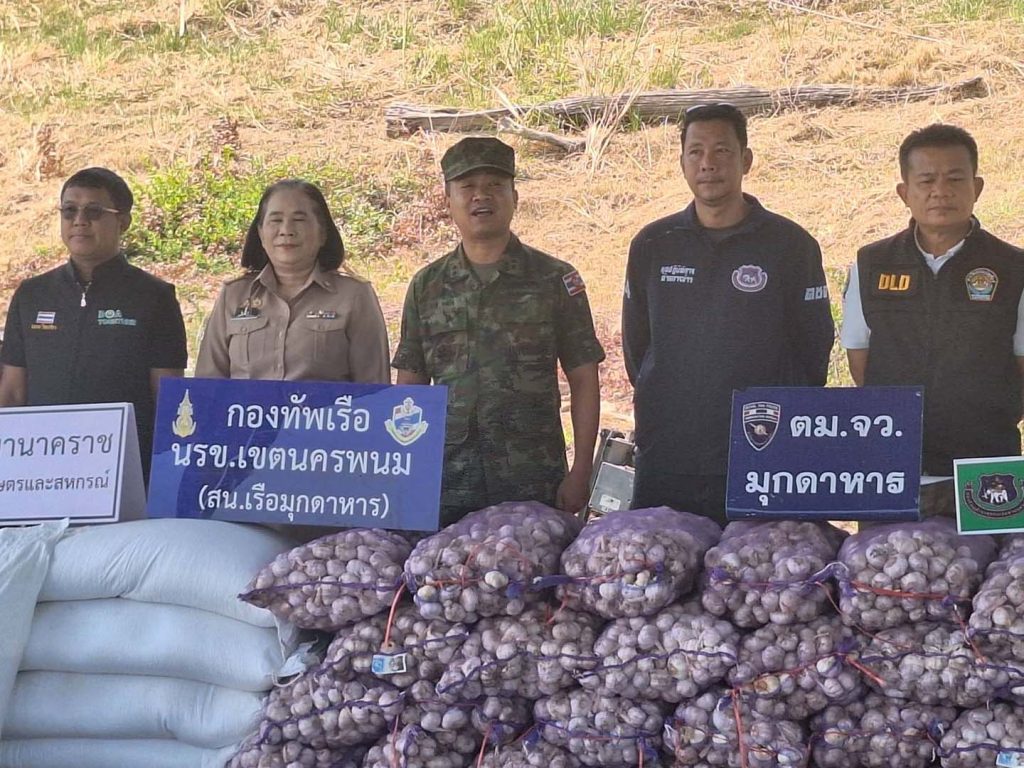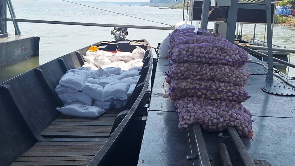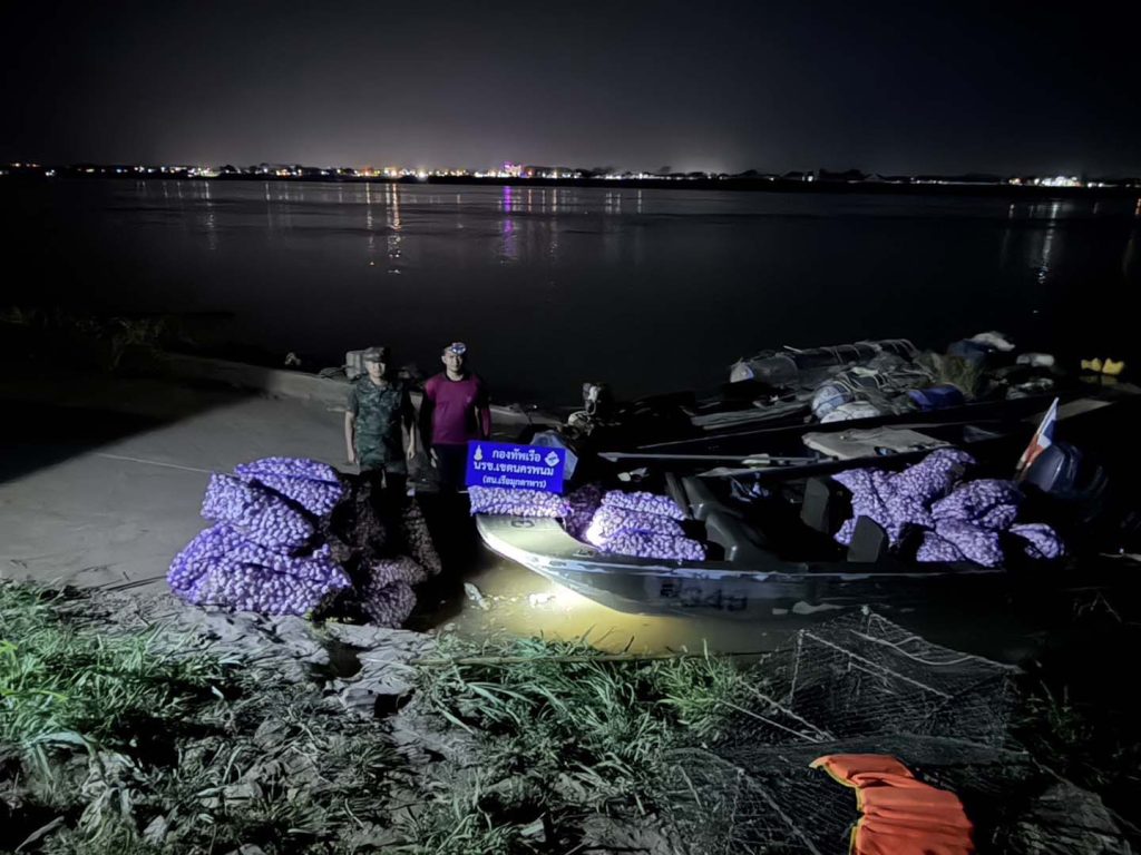 ขณะเดียวกันเจ้าหน้าที่ชุดจับกุมได้ตรวจพบกระเทียมแห้ง วางไว้ที่บริเวณริมแม่น้ำโขง ชุมชนศรีมงคลเหนือ เขตเทศบาลเมืองมุกดาหาร และกระเทียมแห้งที่ไหลมาตามน้ำรวมทั้งสิ้นจำนวน 72 กระสอบ น้ำหนักประมาณ 1.44 ตัน โดยทั้ง 2 จุดห่างกันประมาณ 2 กิโลเมตร เจ้าหน้าที่ตรวจสอบบริเวณใกล้เคียงไม่พบผู้ใดมาแสดงเพื่อเป็นเจ้าของจากนั้นเจ้าหน้าที่ชุดจับกุมได้นำของกลางทั้งหมดมาที่ สถานีเรือมุกดาหาร เพื่อตรวจนับให้ละเอียดอีกครั้ง และได้แจ้งข้อกล่าวหา นำเข้าสินค้าโดยไม่ผ่านพิธีการทางศุลกากร ก่อนนำของกลาง กระเทียมแห้ง ข้าวสาร และเรือเหล็กพร้อมเครื่องยนต์ ส่งด่านศุลกากรมุกดาหาร เพื่อดำเนินคดีตามกฎหมายต่อไป