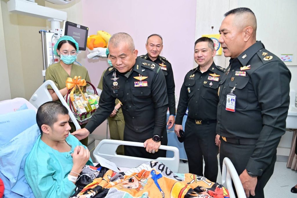 พร้อมกันนี้ ได้สอบถามอาการของกำลังพลและครอบครัวอย่างใกล้ชิด โดยได้เข้าเยี่ยมกำลังพลที่ได้รับบาดเจ็บจากแรงระเบิดและการปะทะที่เข้ารับการรักษาหลายราย ณ อาคารเฉลิมพระเกียรติ สมเด็จพระนางเจ้าสิริกิติ์ พระบรมราชินีนาถ ทั้งในหอผู้ป่วยศัลยกรรมพิเศษและหอผู้ป่วยวิกฤต อาทิ ร้อยเอก ณัฐพล ทองแดง ร.2 พัน.1/กองทัพภาคที่ 1 มีภาวะติดเชื้อและลิ้นหัวใจอักเสบจากการปฏิบัติหน้าที่หน้าแนว, พลทหาร วันชัย รำไพพนา และพลทหาร จักรภัทร อันตะโก ร.16 พัน.1/กองทัพภาคที่ 2 ได้รับบาดเจ็บจากแรงระเบิดมีเลือดออกในสมอง รวมถึง พันโท อิทธิพงศ์ กิจค้า พัน.ซบร.กรม.สน. กองพลทหารราบที่ 11/กองทัพภาคที่ 1 และสิบเอก พรชัย บุญใส ร.2 พัน.1/กองทัพภาคที่ 1 ที่ได้รับบาดเจ็บสาหัสจากแรงระเบิดและยุทโธปกรณ์ทางทหาร