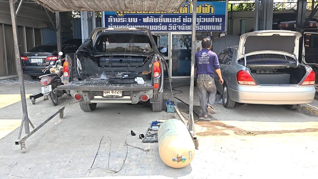 ที่ศูนย์ซ่อมรถยนต์ครบวงจร แยกสารพัดช่าง อำเภอเมืองสุพรรณบุรี ซึ่งเป็นศูนย์ซ่อมรถยนต์ รถไฟฟ้า ติดตั้งตรวจเช็คระบบแก๊สรถยนต์ มีลูกค้าที่ใช้รถยนต์ นำรถยนต์มาตรวจเช็คสภาพมีทั้งรถที่ใช้น้ำมันเชื้อเพลิง และรถที่ใช้ก๊าซ NGV และ LPG เพื่อตรวจเช็คสภาพความพร้อมให้มีความปลอดภัยในการใช้งาน นอกจากนี้ยังมีผู้ใช้รถยนต์อีกจำนวนมากได้นำรถมาติดตั้งแก๊ส LPG