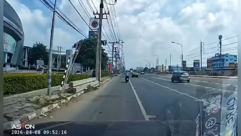 อย่างไรก็ตาม ภาพจากกล้องหน้ารถของพลเมืองดีบันทึกเหตุการณ์ไว้ได้ พบว่ารถยนต์มีจังหวะเปลี่ยนเลนเบี่ยงซ้ายในเส้นทึบ ขณะเดียวกันรถจักรยานยนต์ของผู้บาดเจ็บวิ่งมาในช่องทางตรง จึงเกิดการชนท้ายอย่างรุนแรง