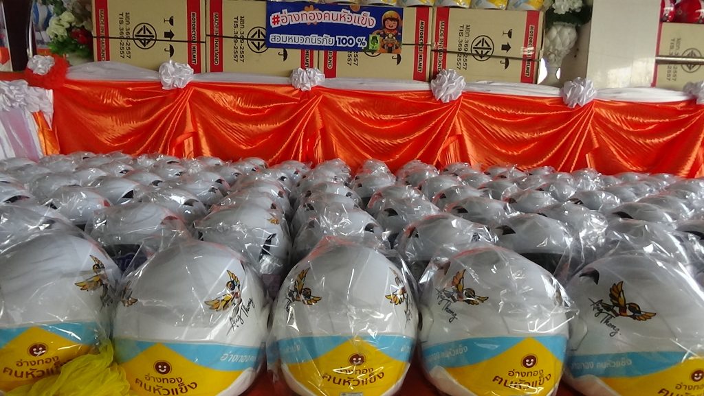ทั้งยังได้รับการสนับสนุนจากหมวกกันน็อกจากบริษัท กลางคุ้มครองผู้ประสบภัยจากรถ จำกัด และบริษัท ฮอนด้า ฯ รวมอีกกว่าพันใบ เพื่อมอบให้แก่ชาวอ่างทอง ทุกหน่วยงานยังได้รับมอบบันทึกข้อตกลงความร่วมมือ (MOU) เพื่อขับเคลื่อนความปลอดภัยจังหวัดอ่างทองอย่างยั่งยืนด้วย