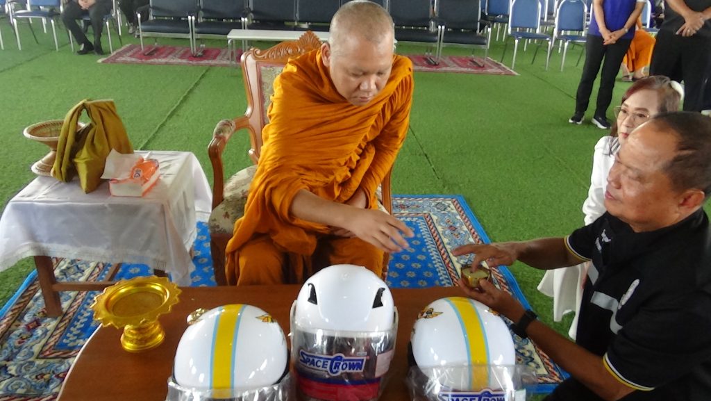 กิจกรรมสำคัญ คือ พิธีเจริญพระพุทธมนต์และปะพรมน้ำมนต์บนหมวกนิรภัย “รุ่นฅนหัวแข็ง” รุ่นแรก จำนวน 3,391 ใบ จากพระวชิรภาวนาภิรัต (แก้ว ธรรมทส ทนติพโล) เจ้าอาวาสวัดตะโก จังหวัดพระนครศรีอยุธยา พระสุวรรณโสภณ เจ้าคณะจังหวัดอ่างทอง และพระสงห์ผู้ทรงสมณศักดิ์ในจังหวัดอ่างทอง