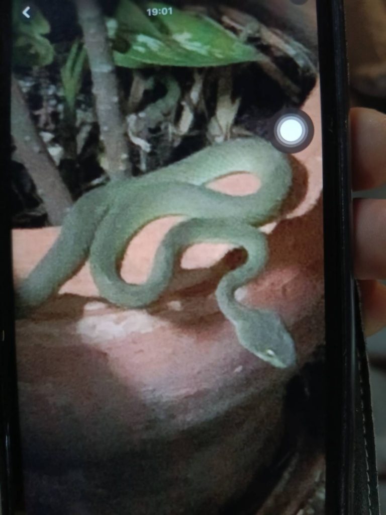 จากการสอบถาม น.ส.ไก่ อายุ 61 ปี แฟนของคนเจ็บได้เล่าว่า แฟนโดนงูกัดที่นิ้วโป้งกับนิ้วชี้มือข้างขวา แล้วเขาก็จับงูใส่ถุงพลาสติกแล้วก็พากันมาโรงพยาบาลเพราะไม่มั่นใจว่าเป็นงูอะไร เพราะตอนที่งูอยู่ในถุงตนเห็นว่าหางทีสีน้ำตาลแดงๆ และคิดว่าไม่น่าใช่งูที่ปลอดภัยแบบงูจิ้งจก หลังจากที่ถึงโรงพยาบาลตนรีบเดินไปบอกว่าหน้าที่ว่ามีคนโดนงูกัดมา พอแฟนชูถุงพลาสติกให้เจ้าหน้าที่ดูแต่ปรากฏว่างูไม่อยู่ในถุงแล้ว ตอนระหว่างขับรถมาตนยังถามว่างูยังอยู่ในถุงไหม แฟนยังบอกว่าอยู่ ตนยังแซวแฟนอยู่เลยว่ามืดแล้วยังเห็นหรอ แฟนเป็นคนจับงูใส่ถุงหลังจากที่งูชกเขาแล้ว ตอนแรกตนจะใช้ไม้กวาดกับที่โกยผงจับงูแต่หันมาอีกทีแฟนก็จับงูใส่ถุงแล้ว ตอนแรกตนยังเตือนแฟนอยู่ว่าเห็นแต่หัวงูเขียวที่แบนแต่หางงูอยู่ตรงกระถางมองไม่เห็น ตนนั้นเป็นตนไม้ของแม่ที่อยู่ในบ้าน และเจองูตรงนั้นบ่อย เจอตั้งแต่งูยังตัวเล็กๆ แม่จะเตือนและไม่ให้รดน้ำตอนกลางคืนเพราะตนไม้เยอะ แต่วันนี้ตนเดินออกมาแล้วเห็นน้ำแรงจึงรดน้ำแล้วงูก็ออกมา ตนเลยโทรเรียกแฟนให้กลับมาดูงูเลยโดนกัด ตอนนี้หมอบอกว่าจะรอดูงูแล้วถึงจะฉีดเซรุ่มได้ ตอนนี้มือเขาบวม