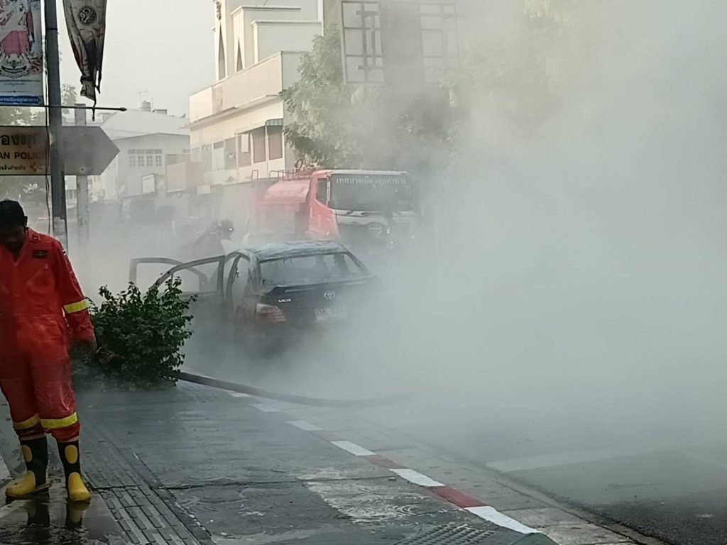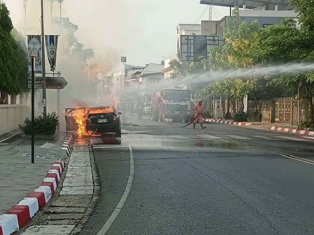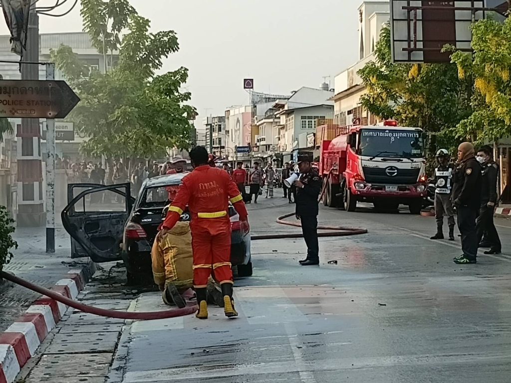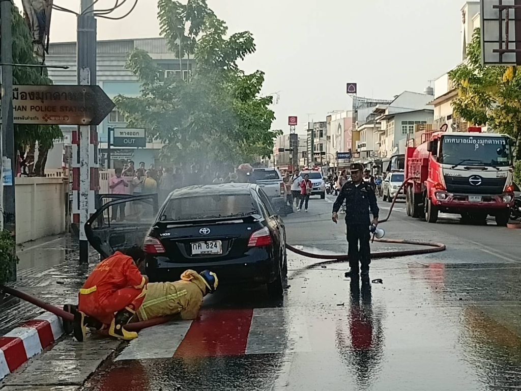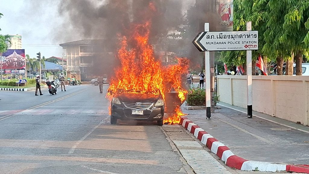 มุกดาหาร – เกิดเหตุเพลิงลุกไหม้รถเก๋งวอดทั้งคัน หวิดดับยกครัวอดีตข้าราชการครู ส่วนเจ้าหน้าที่ตำรวจเร่งตรวจสอบหาสาเหตุ
