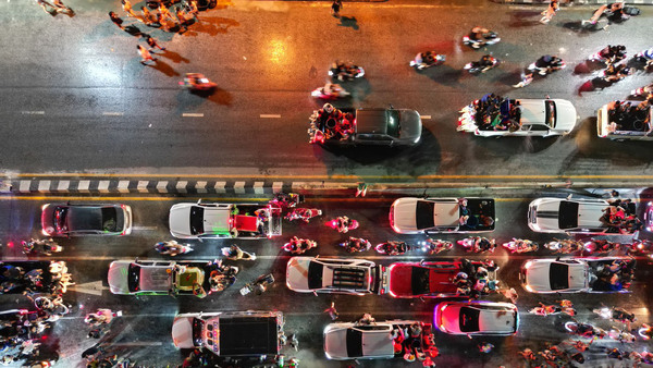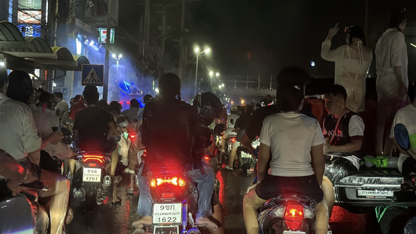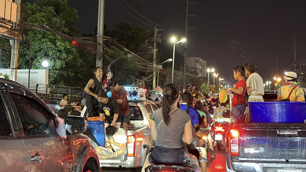 บรรยากาศเล่นน้ำสงกรานต์ส่งท้ายในพื้นที่อำเภอพระประแดง จังหวัดสมุทรปราการ ช่วงเย็นต่อเนื่องค่ำวันที่ 26 เม.ย. 2569 เป็นไปอย่างคึกคักสูงสุด นักท่องเที่ยวและประชาชนหลั่งไหลเข้าพื้นที่จำนวนมาก ส่งผลให้การจราจรกลายเป็นอัมพาต รถติดสะสมยาวต่อเนื่องจนถึงเวลา 01.00 น. และยังไม่คลี่คลาย