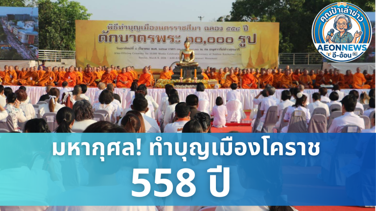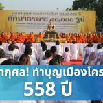 มหากุศล! ทำบุญเมืองโคราช 558 ปี ตักบาตรพระสงฆ์ 10,000 รูป ประชาชนร่วมทำบุญแน่น